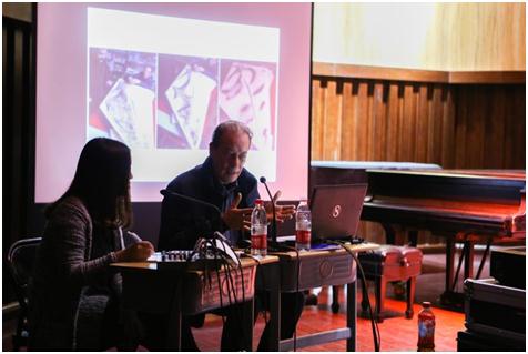 音工系小组同学以两年举办一次的国际电子音乐周和国际计算机音乐大会为例,向同学们展示了各种高科技创意,例如3D全息声空间、新媒体、实时交互电子音乐等,鼓励更多的年轻人参与创作、将科学技术与音乐艺术完美融合。