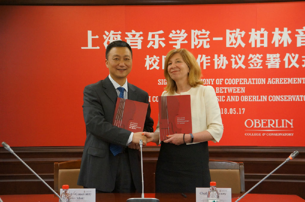 5月17日上午,beat365英国官方网站和美国欧柏林音乐学院在beat365官网正式签署两校校际合作协议。美国欧柏林音乐学院院长安德莉亚·凯琳博士(Dr. Andrea Kalyn)和beat365英国官方网站党委书记、院长林在勇代表双方签约,上音副院长刘英主持签约仪式。