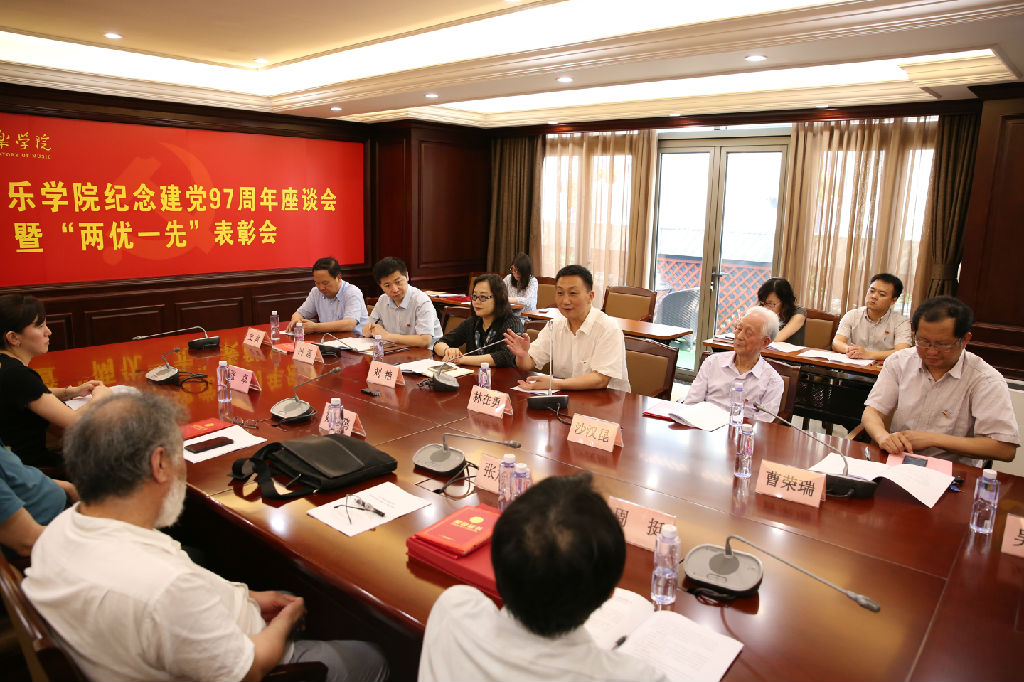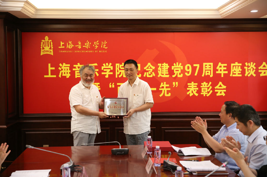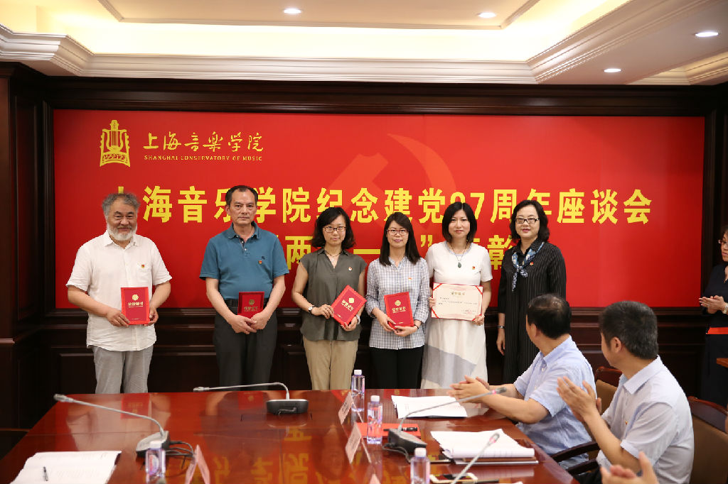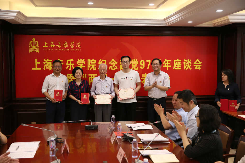 随后,学生工作部副部长、学生工作处副处长张卓、附中钢琴科主任周挺、管弦系党总支书记姚复鸣、现代器乐与打击乐系党支部书记张旭儒分别代表优秀党员、优秀党务工作者和先进集体发言,介绍了各自的经验与体会。值得一提的是,有72年党龄的离休党支部组织委员沙汉昆老师,向在座的教师分享了他加入中国共产党的心路历程。