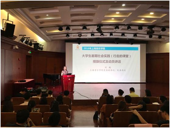刘艳对所有参加社会实践的师生提出三点希望:一、要站在如何担当起上音青年应有的时代责任和繁荣文化发展使命的高度去看待此次社会实践,紧扣本次社会实践的主题“传承红色基因,勇担文化繁荣使命”。要积极传承上音的红色基因,以社会实践为契机,深入社会、深入生活,在身体力行中更好地认识国情、了解社会,在扎根人民的火热情怀中,勇敢担当作为上音青年的责任。习近平总书记在7月2日同团中央新一届领导班子成员集体谈话时强调,要让广大青年敢于有梦、勇于追梦、勤于圆梦。此前在全国高校思政工作会议中,总书记也多次提出,青年一代有理想、有本领、有担当,国家就有前途,民族就有希望。希望上音师生不负总书记的殷切期待,在祖国广袤大地上放飞梦想、追逐梦想。二、希望大家能够珍惜学校提供的社会实践机会。社会实践是第二课堂,要认真拜人民群众为师,到社会大学堂中去受教育、长才干,在这个大课堂中向祖国、向人民展示新时代上音人的红色基因、优良传统和艺术实践成果,在社会大课堂中加深师生情谊,做到教学相长。三、希望参加此次社会实践的全体师生,能够将象牙塔中的理论与人民大众的文艺需求相结合,实践出真知,做到知行合一。实践结束回校后,将自己的所学所悟和收获与更多的同学分享,让更多的学生受到启发。今年恰逢改革开放40周年,在座的所有师生作为改革开放的受益者,更应当怀着感恩的心全身心投入到轰轰烈烈的火热实践中,深入生活、扎根人民,服务社会、报效祖国。