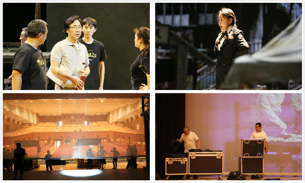 由于接到演出任务之后的准备时间非常短,许多同学未及返校,便马不停蹄地从四面八方赶到北京,迅速投入排练,连夜走台彩排。除此之外,此次演出的装台任务也极其复杂。舞台技术人员已于上周末抵达演出现场,像螺丝钉一样日以继夜地盯在自己的岗位上,力求保证演出质量。导演刘恋更是在3 日晚完成在国家大剧院的演出任务之后,急忙赶往彩排现场。此次中央党校(国家行政学院)的演出阵容以教师组为主,学生组的几位主演就全都加入了群演队伍。这些,无疑都是上音精神的体现。