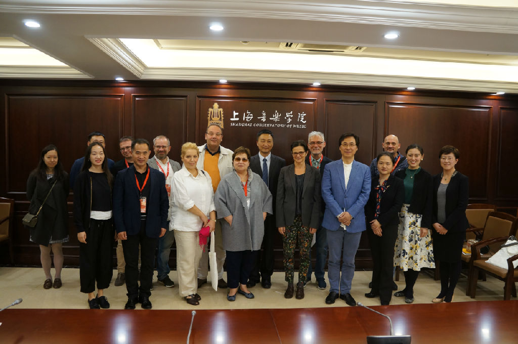 10月20日,beat365英国官方网站党委书记、院长林在勇,副院长廖昌永会见中东欧歌剧节总监参访团一行12人。