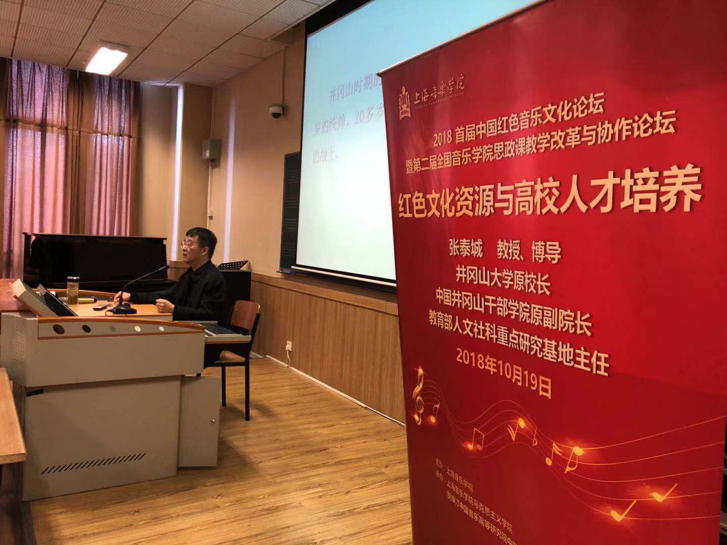 10月19日上午和下午,2018首届中国红色音乐文化论坛两场专题讲座,分别由湘潭大学副校长、博士生导师刘建平教授和井冈山大学原校长、中国井冈山干部学院原副院长、教育部人文社科重点研究基地主任张泰城教授,于北416教室,分别讲授。