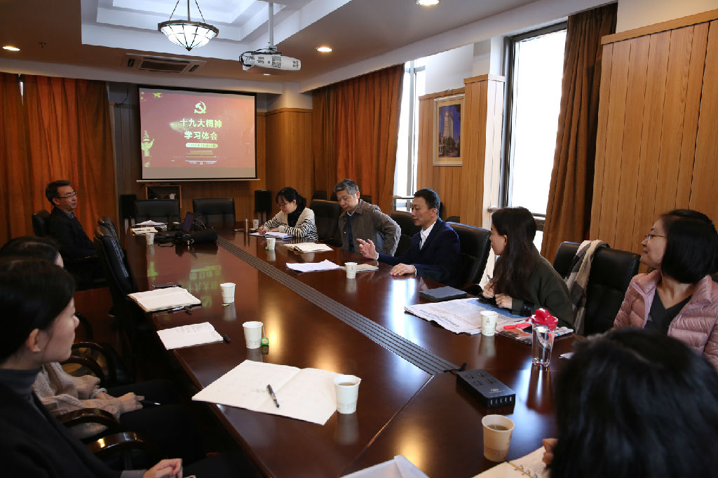 学习中,吴学霆、沈黉婕、蔡琰、陈冬莉等同志轮流发言,传达讲话精神,分享学习感受。院十九大精神宣讲团成员吴学霆同志作理论宣讲,与大家一同学习了习近平新时代中国特色社会主义思想和党的十九大精神中的重大理论创新,并结合上音艺术院校的特色,围绕“文化自信”等关键词做了重点解读。沈黉婕同志在传达全国高校思政工作会议精神的基础上,结合她文化扶贫入基层的工作经验,深入阐释了“全员育人、全过程育人、全方位育人”理念的重要性。蔡琰、陈冬莉同志也分别就全国宣传思想工作会议精神、习近平总书记在上海的重要讲话精神,与在座党员进行了传达和交流。
