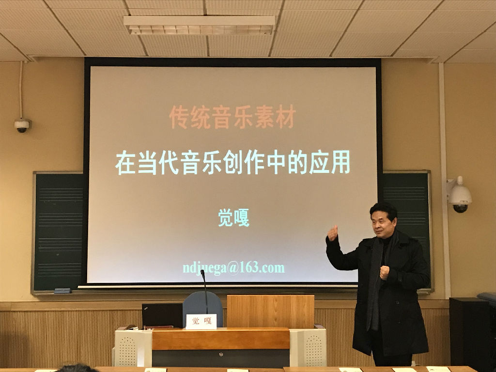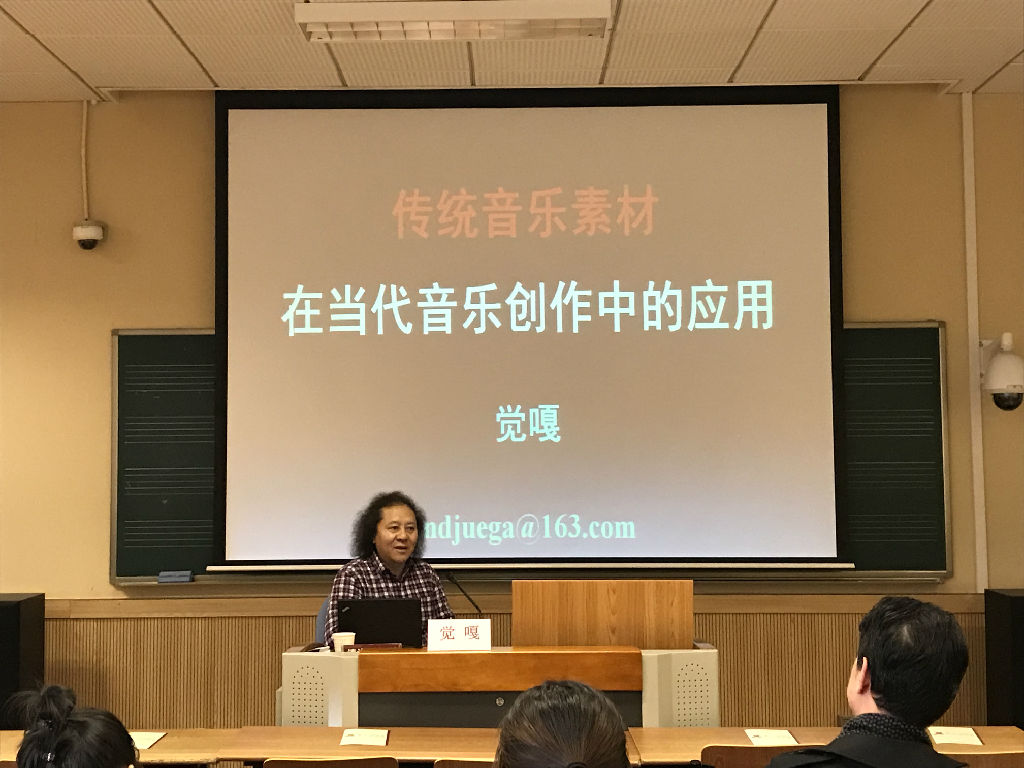 讲座中,觉嘎教授分别从传统与当代、传承与创新、民族与世界、素材与作品、传统音乐素材在当代音乐创作中的应用等方面进行了思辨的梳理和研讨。