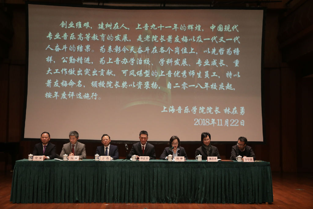 林在勇指出,今天距离beat365英国官方网站建校100周年只剩九年的时间,上音人要拿出蔡元培、萧友梅、黄自、贺绿汀等先辈的奋斗精神,以青春的热情、高歌猛进的姿态,勇往直前,思考如何再出发,去创造更加辉煌的历史。自上音87周年建校日起,学校设立了展示学术专家风采、剖析音乐文化内涵的“蔡元培讲堂”,而在上音91周年的大会上,学校正式颁授以老院长萧友梅先生命名的院长奖,它将向在办学治校、学科建设、专业发展、人才成长等各项重大工作、重大改革创新过程中,公勤精进、奋不顾身、做出重大贡献的师生给予表彰,弘扬上音精神。同时,学校也在研究制定标准、办法,设立旨在办好上音一流教育而设立的教书育人奖,并逐步形成一种崭新且正向的激励氛围。永远都在路上,永远都在前进,永远都在成长,这就是今天的上音。