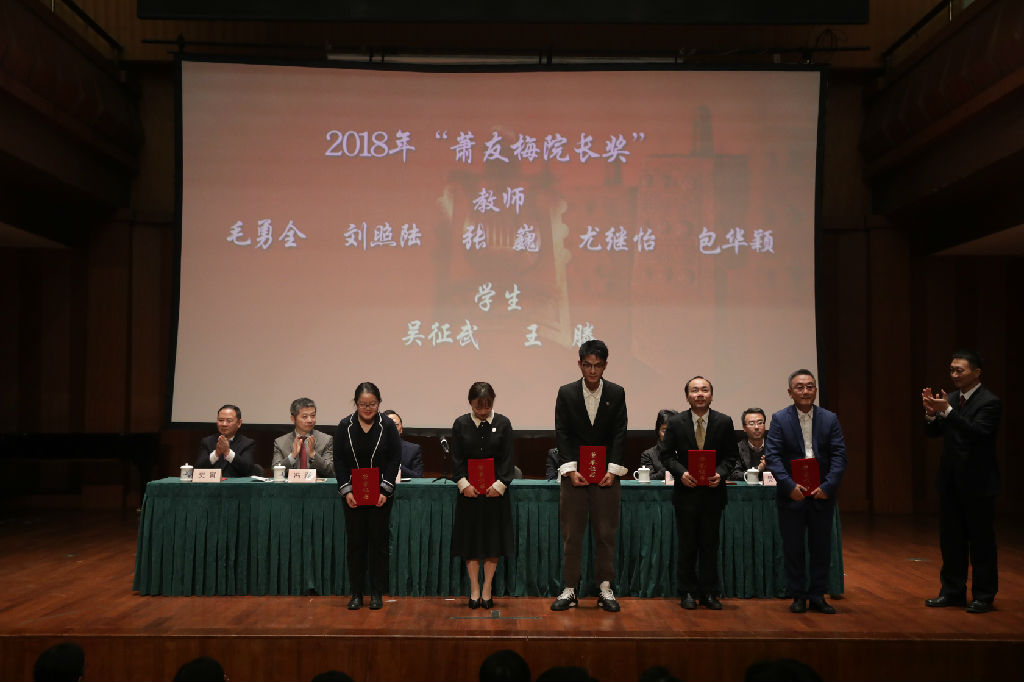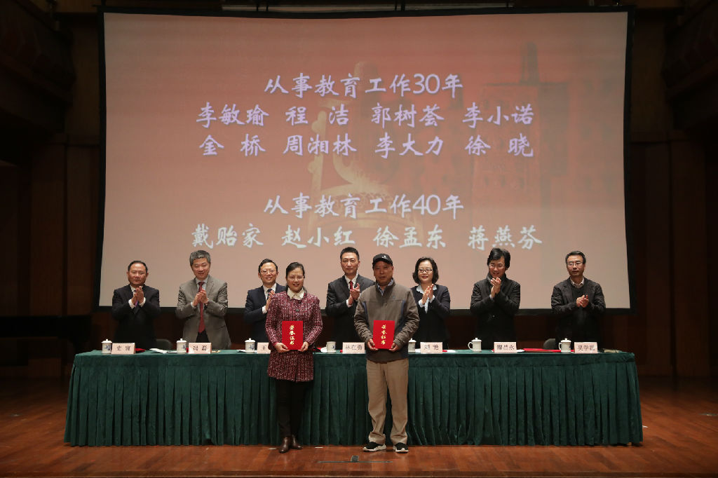 在向“上音功臣”致敬环节,院领导向学校获得“万人计划”领军人才、2018年“萧友梅院长奖”“贺绿汀基金奖”和从事教育工作三十年、四十年的教工颁发证书并合影留念。