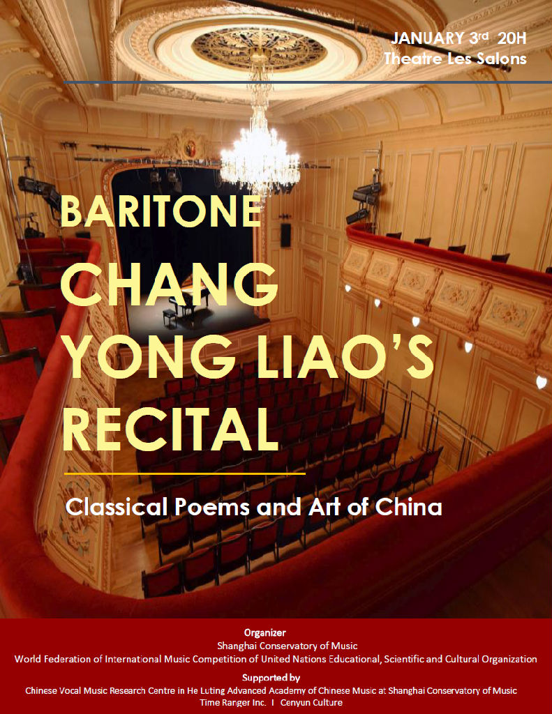 位于瑞士西部边境的日内瓦堪称一座“世界之城”——联合国驻欧洲总部和国际红十字会等国际组织汇集于此,一系列深刻影响人类社会与文化进程的条约在此缔结。联合国万国宫前,国旗方阵庄重挺拔,迎风飘扬,宣示着人类团结与文化交融。新年之际,1月3日晚,日内瓦的国际文化长卷再被添上浓重一笔,在古雅而温馨的让·佛朗索瓦·巴托洛尼街沙龙剧院,一场形式新颖、别出心裁并全方位展示中国古典艺术底蕴的先河之作——《中国古典诗词与书画——廖昌永中国艺术歌曲独唱音乐会》成功举办。