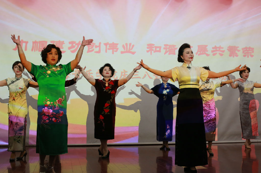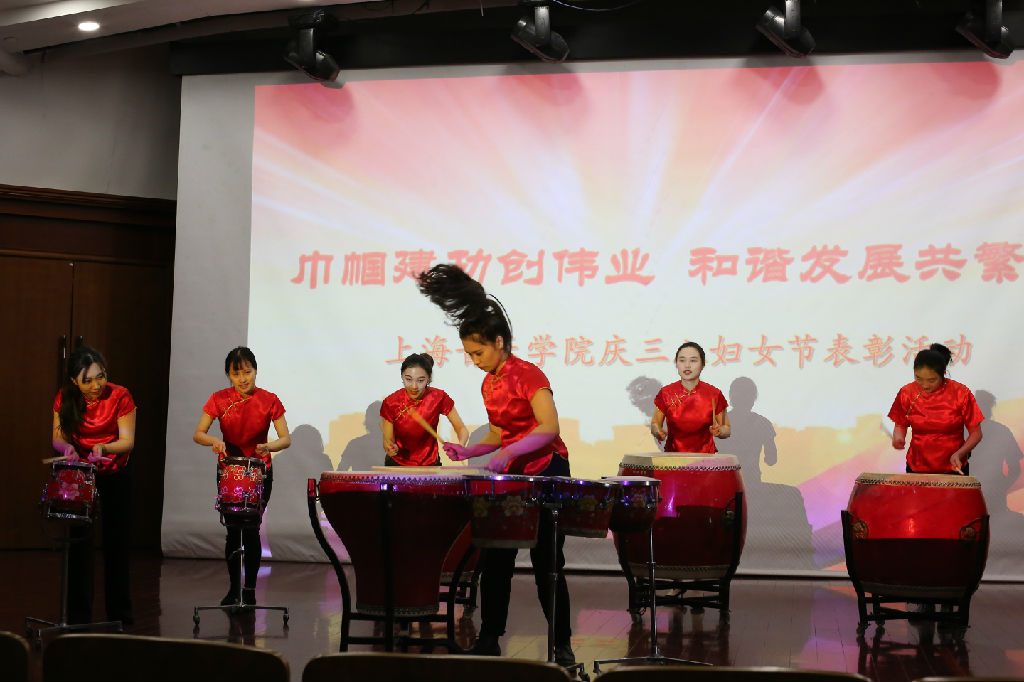 表彰活动在女教师旗袍秀、新进教师刘雯雯与学生团队的吹打乐表演,以及李秀英教授担纲的《我和我的祖国》小合唱中到达高潮。院工会还为大家精心准备了玫瑰花和节日蛋糕,象征生活甜美、家庭幸福。