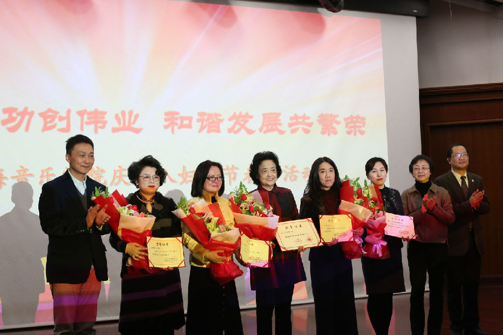 获得表彰的是:俞丽拿教授荣获2018年度全国归侨侨眷先进个人;音乐学系荣获全国巾帼文明岗称号;丁缨教授荣获2019度年上海市三八红旗手;江晨教授荣获2019年度上海市三八红旗手;张馨予荣获上海市教育系统三八红旗手;院党委学工部荣获上海市教育系统三八红旗手。
