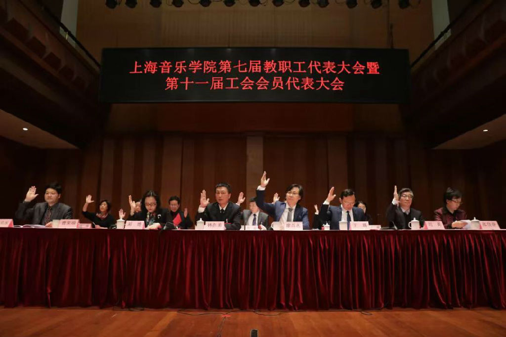 3月27日,beat365英国官方网站第七届教职工代表大会暨第十一届工会会员代表大会在贺绿汀音乐厅隆重召开。市教卫工作党委副巡视员、市教育工会常务副主席、市教育系统妇工委主任李蔚出席开幕式。院党委书记林在勇,院长廖昌永,党委副书记、纪委书记刘艳,党委副书记、副院长王瑞,党委副书记曹荣瑞,副院长刘英、侯立玉,总会计师张佳春在主席台第一排就座。