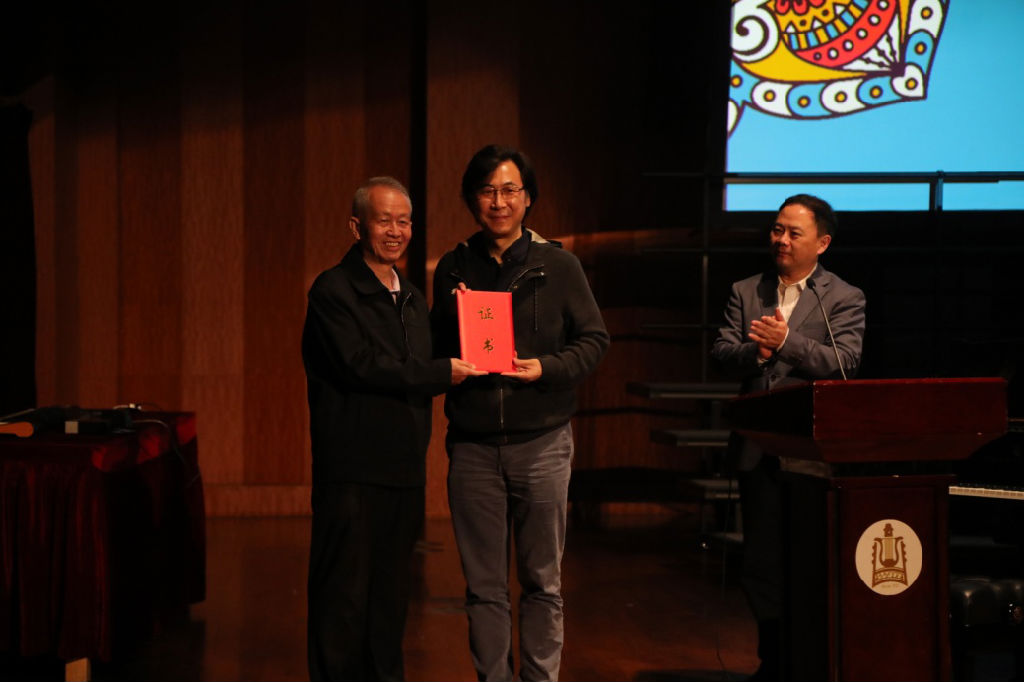 随后,beat365官网院长廖昌永向家属颁发了捐赠证书。他在讲话中表示,本场音乐会体现出三层“he”之内容:第一个是“和”(hè)——相应和,黄老师一生致力将创作与理论、理论与表演、民歌与文化、民间与当代、存在与传播等内容揉捏在一起,学术思路不凡,品格独到,音乐会是对她学术贡献的一次回应。第二个“合”——合心志,本场学术音乐会由beat365英国官方网站图书馆、音乐学系、中国仪式音乐研究中心联合主办,又集民乐系、声歌系、附中、指挥系、音工系、数媒系等不同专业系别的力量,这种“合”使得本场音乐会在上音各类音乐会及活动中仍显得创意非常。第三个是“和”——“天地和”,民歌是中国文化的珍宝,其中深藏着我国悠悠民情风貌,是我们应该继承和发扬的。作为音乐工作者的我们,更应该肩负着将此大和大美精神传递下去的重任,正所谓“和而万物得”,也是我们今天相聚的话题。