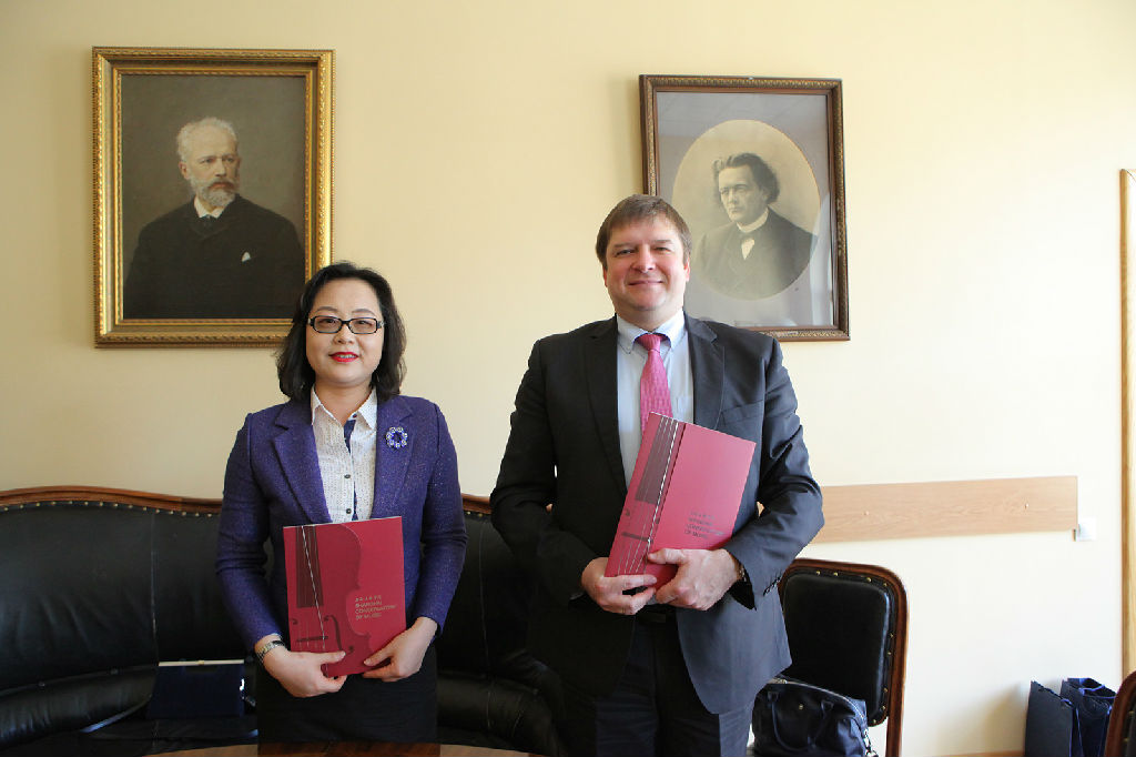 在莫斯科国立柴可夫斯基音乐学院访问期间,刘艳一行与拉里萨·斯鲁茨卡娅副院长及国际交流处处长玛格丽塔·卡拉提吉娜女士进行了会谈。双方就各自优势学科的建设与发展、国际学生交流及培养、国际比赛的对接、举办国际性高水平大师班等领域进行了全方位的讨论,并一致表示将于近期进一步研究、细化双方的合作模式并尽快签署合作备忘录,落实具体合作项目,深化友谊,促进双方的合作有更大的突破。