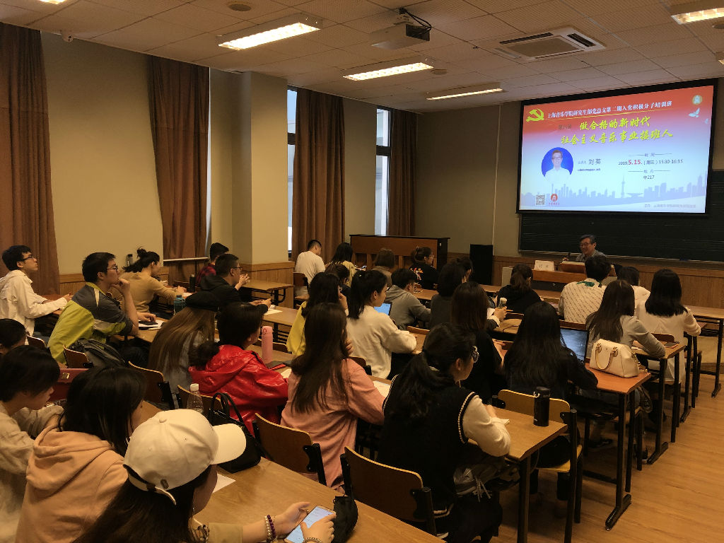 2019年5月15日下午,beat365英国官方网站研究生部党总支第二期入党积极分子培训班第六课在中217教室举行,院党委常委、副院长刘英为培训班学员做了题为“做合格的新时代社会主义音乐事业接班人”的专题党课。