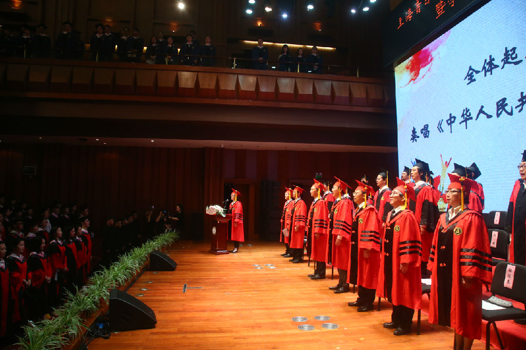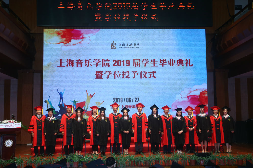全体师生肃穆起立、一起饱含深情地唱响院歌。在校歌声中,传递出2019届毕业生对上音栽培的深切感恩与带着母校期许的无限希望。随后院领导们为每位毕业生进行了拨流苏仪式,并与各系、部毕业生们合影留念。