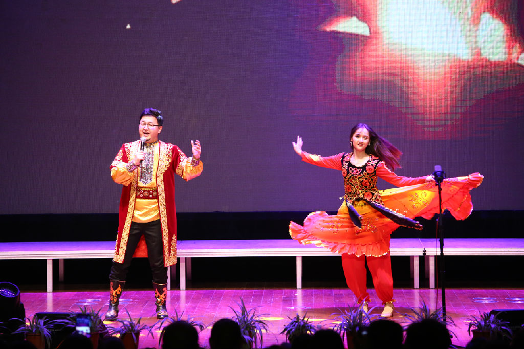 本次晚会的又一亮点是由少数民族师生带来的歌曲联唱,其中有朝鲜族民歌《阿里郎》、蒙古族民歌《酒歌》、维吾尔族民歌《阿娜尔罕》、回族民歌《花儿与少年》,表现了各民族不同的音乐魅力与热情。