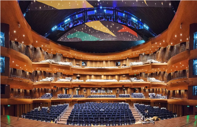 为了能让观众提前进入观演情境,设计师在大厅也做了隔音处理;剧场内马蹄形的结构让观众的观演感受更为贴近舞台,即使在三层,也不会觉得太过遥远;独特的可升降反声版和有开合功能的乐池设计能为各类声乐、器乐演出提供一流的声场效果;座椅后方的字幕显示屏可提供9种不同语言的字幕切换,这一技术更是和维也纳国家歌剧院等国际级的歌剧院同步。 毫无疑问,上音歌剧院将成为亚洲一流、世界领先的,集学科建设、文艺演出、艺术普及、原创基地、国际交流为一体的文化综合体。
