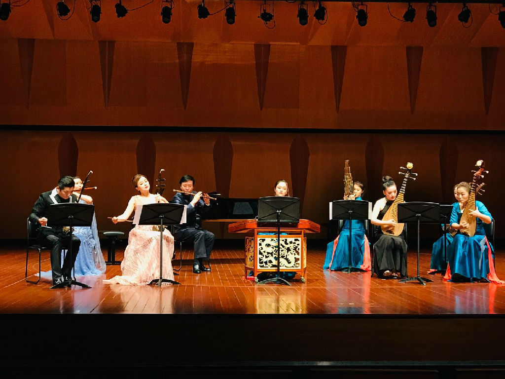 在庆典音乐会上,两校师生通过独奏、丝弦五重奏、江南丝竹、华乐六重奏等不同形式演绎了风格各异的中国民族音乐作品;最后,两校师生还共同联合演出了《行街》等民乐经典作品。整台音乐会节奏流畅、色彩纷呈,不断博得台下观众的喝彩,好评如潮,为“中国音乐文化中心”的成立拉开了欢庆的序幕。