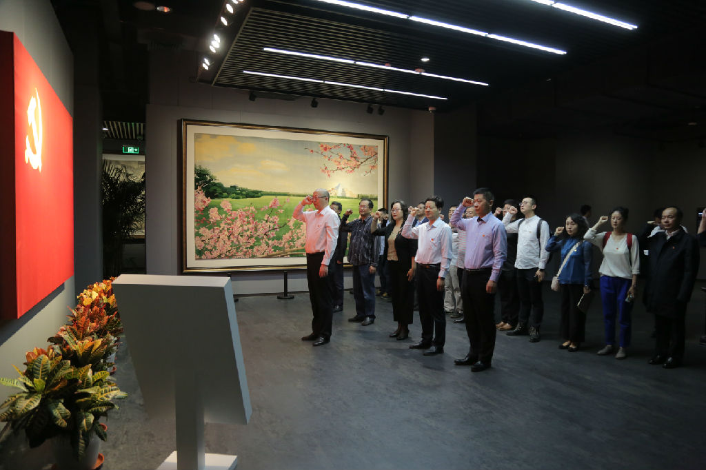 伴随着庄严的国歌声,祭奠仪式正式开始。礼兵迈着缓慢而庄重的礼步,向镌刻着“丹心碧血为人民”的烈士纪念碑敬献花篮,全体祭奠人员肃穆而立,向烈士纪念碑三鞠躬。礼毕,全体人员步入巍峨的烈士纪念馆,重温革命历程、追忆峥嵘岁月。大家在鲜红的党旗下重温入党誓词,字字铿锵中,党的使命牢记心上,党的初心烙印心头。
