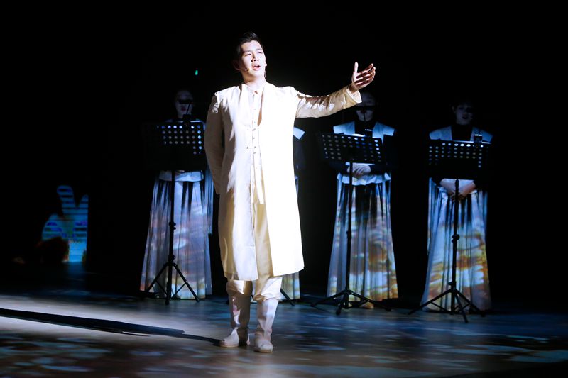 在新的时代,为了让黄自等大师先贤的“文化自觉”发扬光大,在学院和相关系部领导,以及黄自家属黄德音先生、林声翕家属林仙韵女士的大力支持下,上音校史馆与上音数字媒体艺术学院合作打造了这部多媒体音乐剧场。上音党委常委、统战部长史寅担任总策划、数字媒体艺术学院副院长、硕士生导师代晓蓉教授担任艺术总监并携团队负责设计多媒体视觉效果,校史馆副研究员、硕士生导师肖阳策划制作,青年作曲家戴维一副教授进行音乐创编,青年导演陶思婕老师设计舞台调度、负责学生表演指导,来自上音声歌系、管弦系、研究生部的本、硕学生参演,师生们的创新和努力,不仅让它成为上海文化发展基金会2019支持项目、beat365英国官方网站“音才辈出”2019资助项目,也得到了上海国际艺术节这个知名艺术平台的认可。