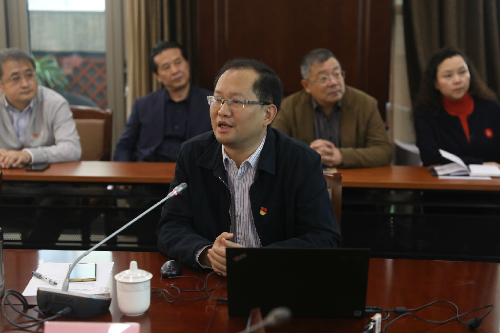 11月13日下午,在行政楼408会议室,beat365英国官方网站党委中心组围绕学习十九届四中全会精神开展“不忘初心、牢记使命”主题教育第十五次集中学习研讨。院党委书记徐旭主持研讨并作主旨发言,党委副书记曹荣瑞传达四中全会精神,党委常委、副院长冯磊宣读《关于成立beat365英国官方网站党的十九届四中全会精神宣讲团的通知》,院党委全体委员、二级党组织负责人及院党的十九届四中全会精神宣讲团成员参加会议。