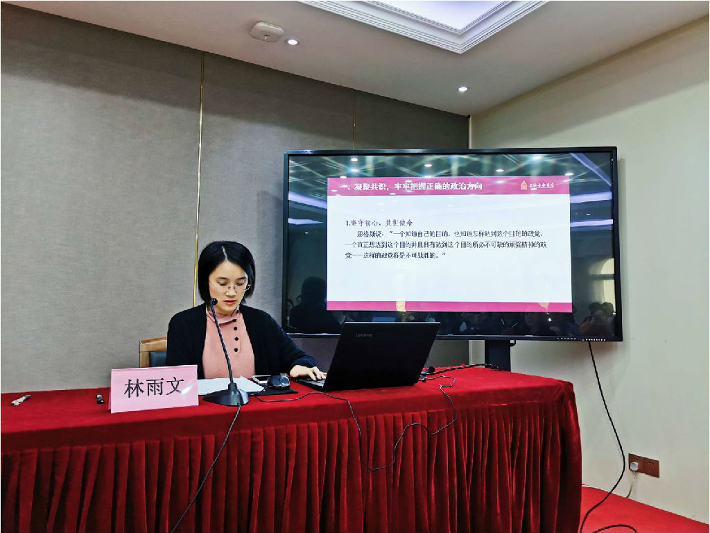 冯磊说:在刚刚结束的党的十九届四中全会通过的《决定》中,明确提出要建立不忘初心、牢记使命的制度。把不忘初心、牢记使命作为加强党的建设的永恒课题和全体党员、干部的终身课题,形成长效机制,坚持不懈锤炼党员、干部忠诚干净担当的政治品格。第二批主题教育即将结束,学工系统应形成主题教育专题学习研讨常态化,希望辅导员老师们继续保持学习的状态、密切关注国家形势与政策、及时做好上传下达工作,在不断学习、交流中找准工作主线和工作重心,不断拓展提高自身能力和综合素养的途径,将思政工作和其他事务性工作有效衔接、充分融合,利用好辅导员双重身份这一优势,动态化设计培训方案,达到有所学、有所思、有所悟、有所成长的目标,更好地实现个人终身发展。