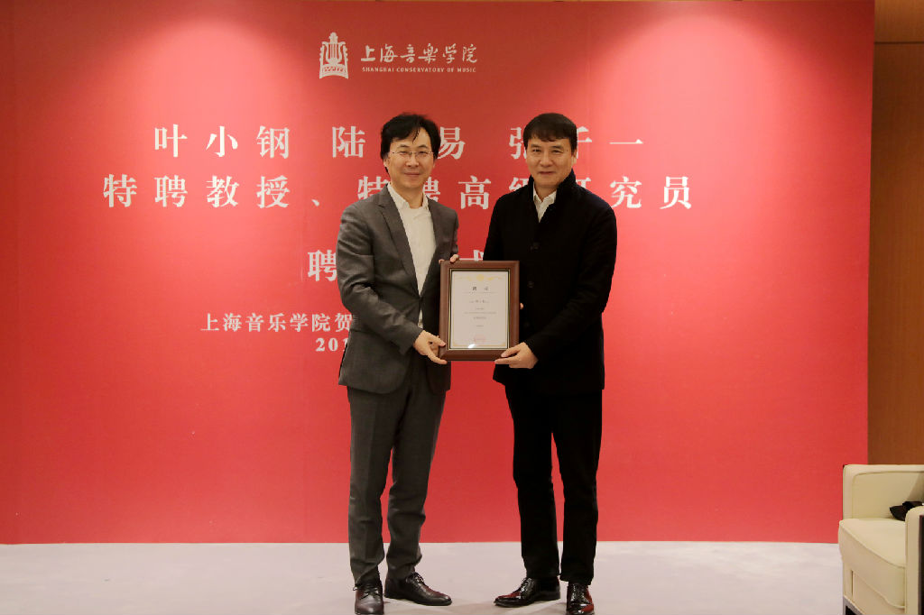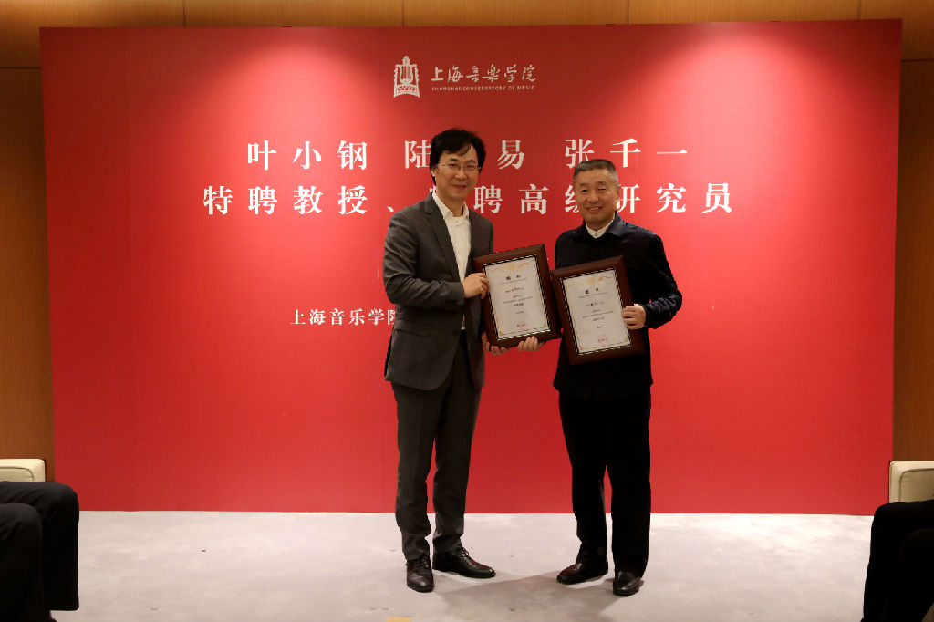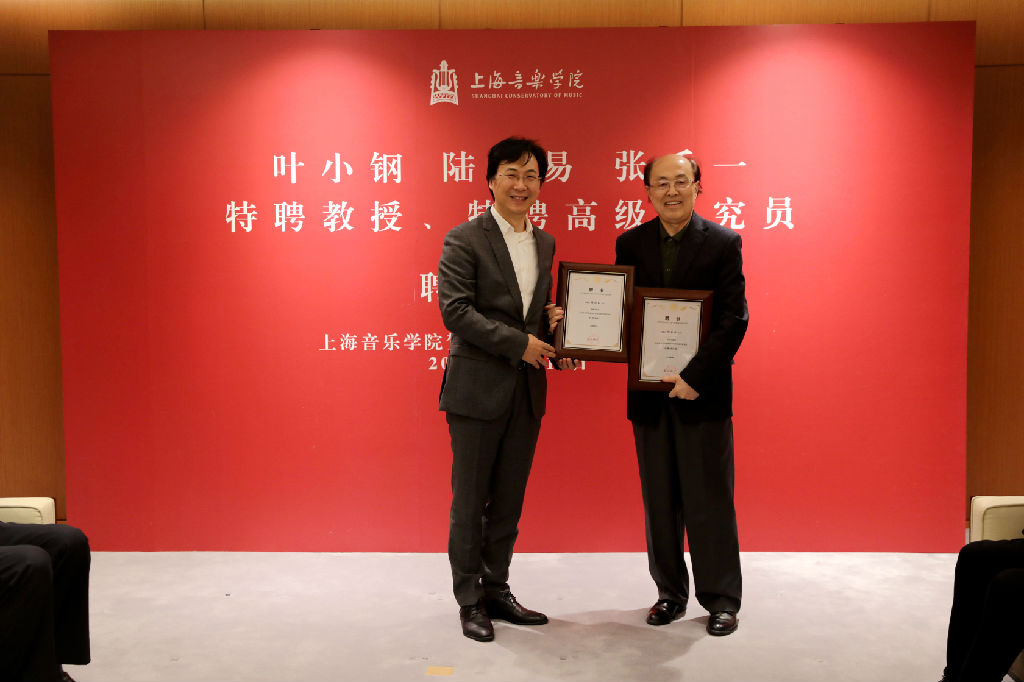 院党委书记徐旭教授在聘任仪式上发表了热情洋溢的致辞,感谢几位老师能够接受上音的聘任,他说:有着高远的理想和坚实的基础,我们有信心使大师的学问不能仅藏之于名山,更要播传万里,惠及广大学子的成长,出作品、出大师、出标准、出思想,这也是上音的初心与初衷。
