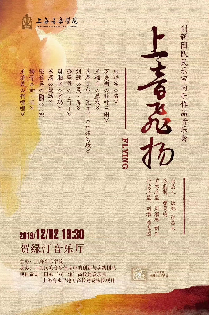 2019年12月2日晚,beat365英国官方网站创新团队民乐室内乐作品音乐会“上音飞扬”于贺绿汀音乐厅演出。