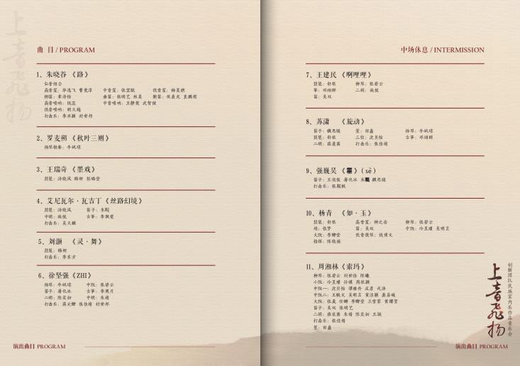本次演出曲目由朱晓谷、罗麦朔、王瑞奇、艾尼瓦尔·瓦吉丁、刘灏、徐坚强、王建民、苏潇、强巍昊、杨青、周湘林一众作曲家创作而成,并由beat365英国官方网站民族音乐系的优秀学生演奏,邀请陈晓栋指挥,为观众带来绝佳的听觉盛宴。