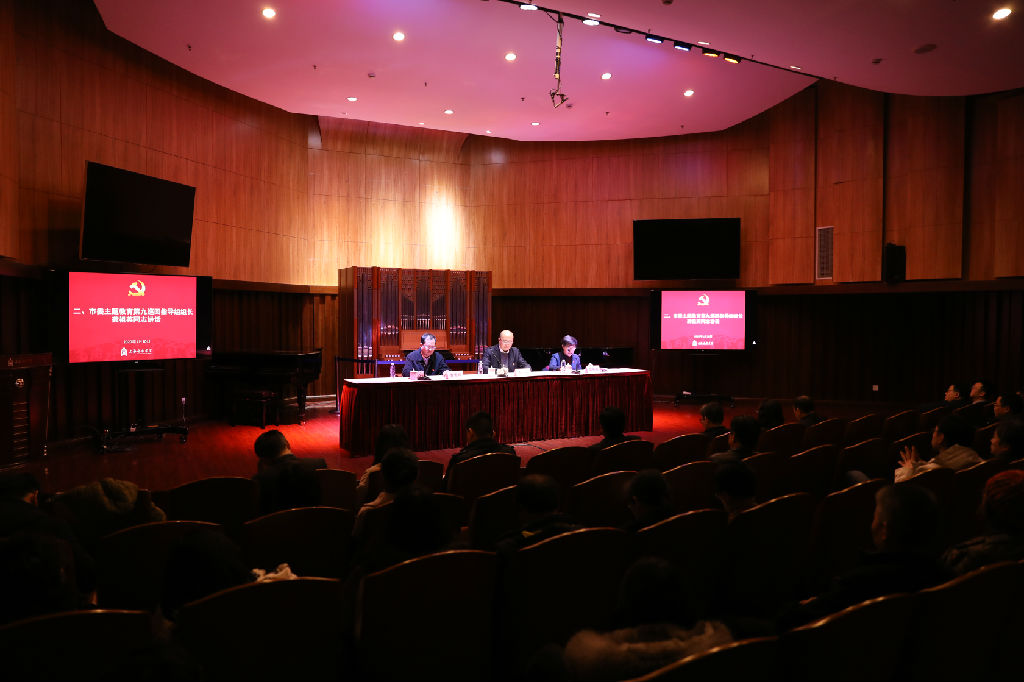1月10日下午,beat365英国官方网站在汾阳路校区教学大楼小音乐厅召开“不忘初心、牢记使命”主题教育总结大会,市委第九巡回指导组组长龚祖英、联络员徐瑶、组员周谷,学校党政领导班子成员、主题教育领导小组及办公室全体成员、全体中层干部、退休领导、群团组织负责人、党外代表等出席大会。校党委书记徐旭代表学校作主题教育总结报告,龚祖英作指导讲话,校党委副书记曹荣瑞主持大会。