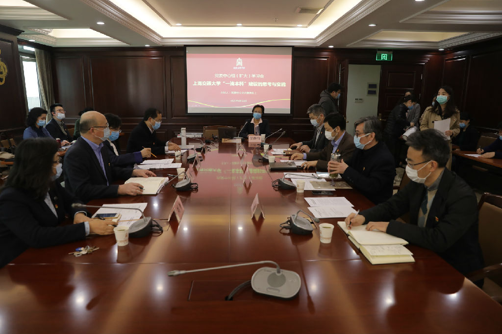 本次中心组学习邀请到上海交通大学副教务长、教务处处长吴静怡教授作关于“上海交通大学’一流本科’建设的思考”的专题报告。校党委中心组成员、党政领导、两委委员、中层干部参加学习会,党委副书记曹荣瑞主持。
