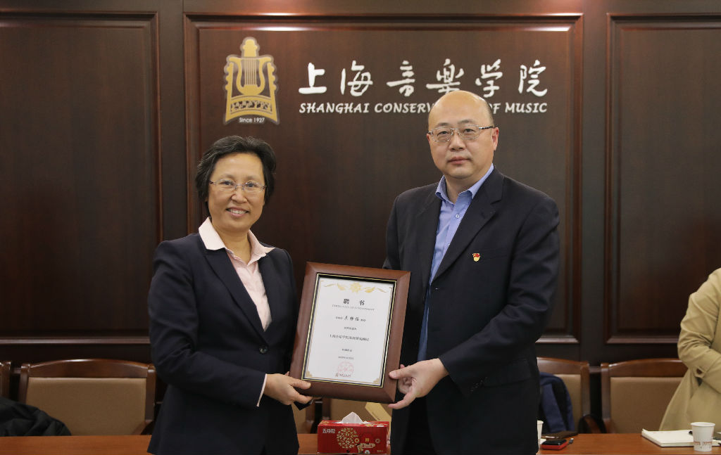在报告开始前,校党委书记徐旭向吴静怡教授颁发规划发展顾问聘书。