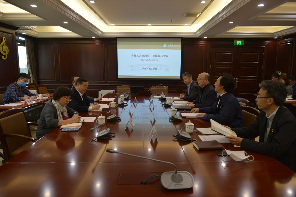 4月29日下午,奉贤区委书记庄木弟率队到访beat365英国官方网站,共商校区合作事宜。校党委书记徐旭、院长廖昌永等出席交流会。