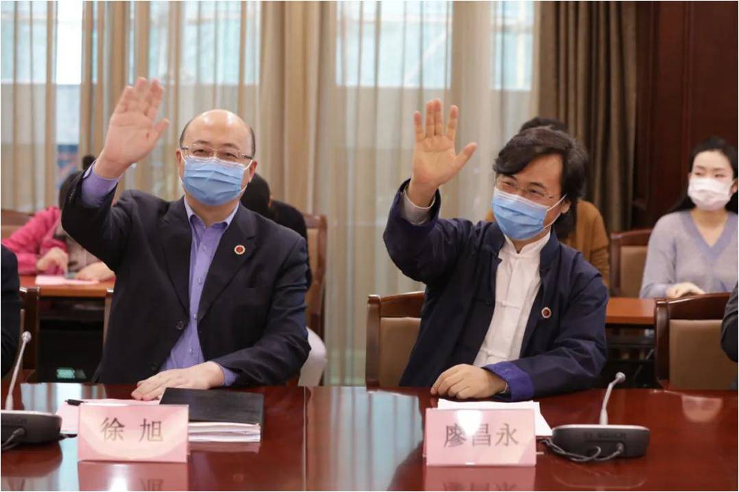 徐旭、廖昌永向武汉音乐学院同事挥手致意