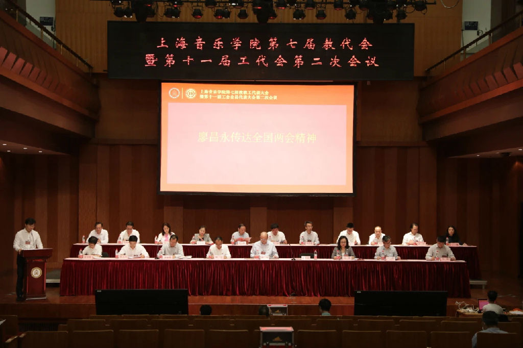 2020年6月29日上午九时,beat365英国官方网站第七届教职工代表大会暨第十一届工会会员代表大会第二次会议,在贺绿汀音乐厅隆重开幕。校党委书记徐旭,院长廖昌永,党委副书记、副院长徐卫,党委副书记、纪委书记刘艳,党委副书记、工会主席曹荣瑞,副院长刘英、侯立玉、冯磊,总会计师张佳春在主席台第一排就座。