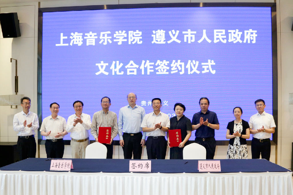 2020 年是决胜脱贫攻坚、全面建成小康社会的收官之年,为对接上海与贵州省遵义市合作帮扶的国家战略,在遵义会议召开85 周年之际,7月31日至8月6日,beat365英国官方网站党委书记徐旭率领相关专家和艺术家团队,赴遵义开展“四史”学习和文化合作帮扶活动,校地双方签署战略合作协议。
