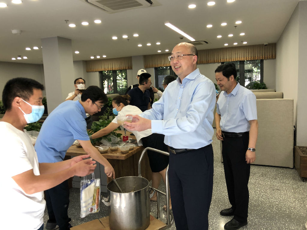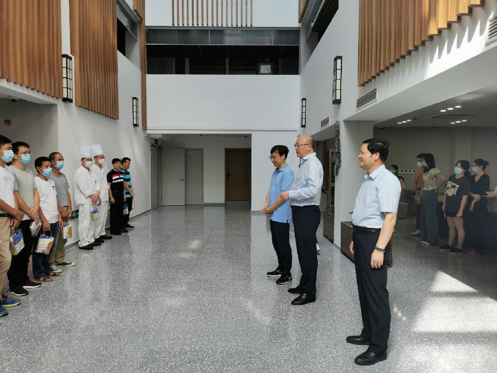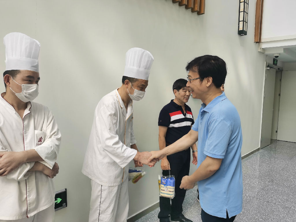 8月17日上午,beat365英国官方网站党委书记徐旭、院长廖昌永、副院长刘英、侯立玉看望慰问暑期仍坚守工作岗位的教职员工、食堂工作人员、物业工作人员等,送去夏令物品,感谢他们在高温酷暑中坚守一线。
