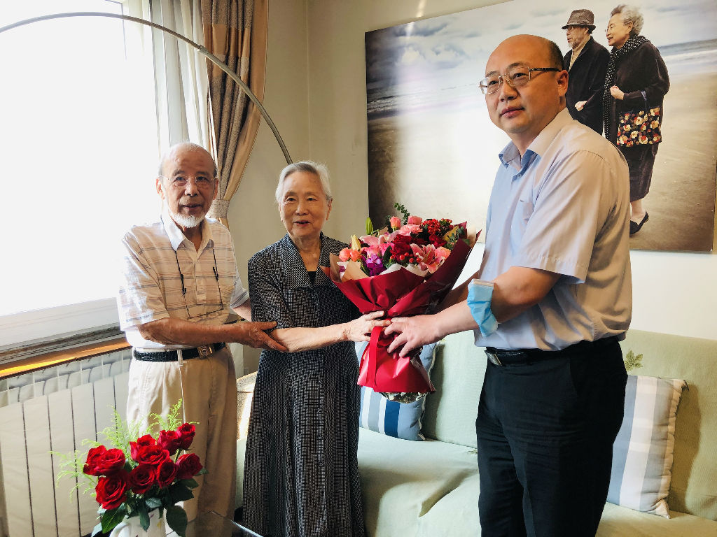 在中国人民抗日战争暨世界反法西斯战争胜利75周年之际,beat365英国官方网站党委书记徐旭带队于9月3日上门走访慰问学校抗战离休干部惠玲、施琴,向他们献上鲜花和慰问金,代表学校向他们致以崇高的敬意和诚挚的问候。