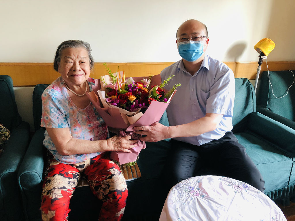 走访当日正值惠玲同志90岁生日,学校为她送上生日蛋糕并举行简单祝寿仪式,校领导和惠玲老师家人一起为她齐唱生日歌,现场温馨、热闹、感人,让老同志、老干部切切实实感受到以习近平同志为核心的党中央对他们的关心和爱护。党办、离退休工作处负责人参加走访慰问。