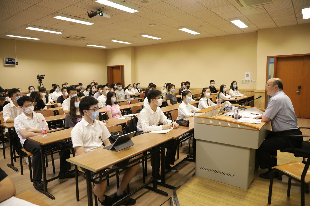 徐旭还与同学们交流了“大时代里上音人的信仰与责任”。他从“立足当下、坚定信仰;身怀技艺、心有家国;把握变化、迎接挑战”三方面嘱托年轻一代的上音人,要不忘先贤们立音的初心,不负前辈们强音的足迹,牢记历史使命,赓续红色基因,为满足人民对美好生活的向往,为民族音乐奏响世界,不断前行,砥砺奋进。作为工程力学教授,他从量子理论的角度讲述了“世界因你而不同”——量子力学的基本原则“测不准”“随机性”“参与性”,告诉你这是一个充满变数也充满可能性的世界,也是一个每一个主体都可以参与改变的世界。“有你的世界和没你的世界,这是两个不同的世界,你们当把握各种不确定,开拓进取、主动参与、迎接挑战、创造机遇!”徐旭还向同学们介绍了上音在“双一流”建设中取得的成绩,以及在未来“十四五”规划中如何主动对接国家战略,积极响应国家号召,推动校地合作、文教结合、产教融合,赋能世界级城市群文化建设等。