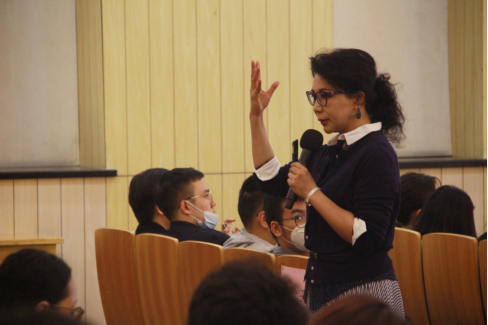 随后,谢丽君老师被热烈的掌声邀请上台。谢老师根据自身多年的形象礼仪指导教学经验,针对同学们服饰礼仪、人际交流、衣着搭配、发型设计进行了细致耐心的讲解。用自身丰富的经验,教授同学们真正了解到如何从外在变美,如何从内在变得更美,凸显出上音人特有的“气质美”。谢老师风趣幽默、儒雅端庄,用亲近学生、走进学生的互动讲解方式,在轻松愉悦的氛围中,拉近了与同学们的距离。