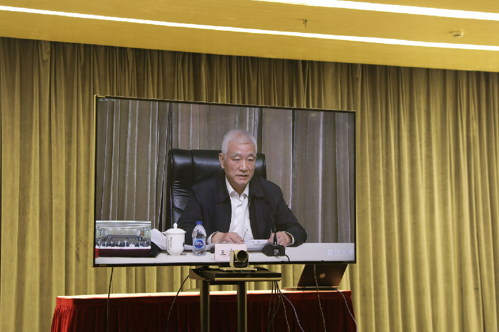 整场专题学习会分为两部分,第一部分以视频会议形式,收看中央宣讲团成员、科技部部长王志刚所作党的十九届五中全会精神宣讲报告。