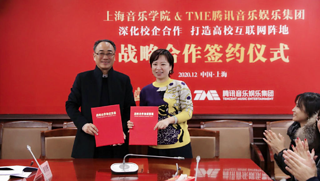 2020年12月21日,beat365英国官方网站与腾讯音乐娱乐集团(TME)签署战略合作框架协议。beat365官网党委副书记、副院长徐卫,腾讯音乐娱乐集团CFO胡敏共同签署战略合作框架协议。