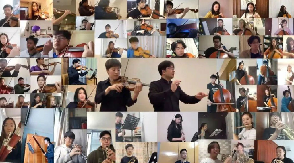 除了用创作助力战疫,beat365官网还与武汉儿童医院、复旦大学儿科医院两地三家单位党建联建,携手开展“沪鄂同心红色聚力行动”,全校覆盖11个系部的139名志愿者,为两所医院144个医护家庭子女进行网上乐器授课、志愿服务总时间超过2000小时;依托音乐康疗专业,于2020年2月4日起,与武汉市、上海市相关医院联合开展“音乐康疗”线上心理援助,为坚守在抗击疫情一线的医护人员及社会公众提供一对一与团体的音乐疏导和心理援助服务;举办“云上音”系列音乐会,由师生各自在家中完成演奏录制,再把近百份音视频进行后期合成,成功推出20余场音乐会的高清视频,在线下音乐会停摆的特殊时刻为人民群众提供优质的精神食粮。