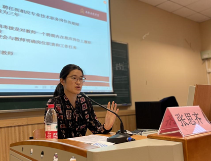 教工部副部长(挂职)张思齐的讲座《beat365英国官方网站教师岗位聘期考核实施办法(试行)解读》,就“什么是聘期考核”“为什么进行聘期考核”“如何进行聘期考核”三项基本内容逐一进行了详细阐释。进而指出,聘期考核的目的是进一步深化人事体制机制改革、树立正确的人才评价导向、增强岗位履职责任意识、充分激发教师队伍活力,为“办一流音乐教育、创国际先进水平”提供坚强师资保障。