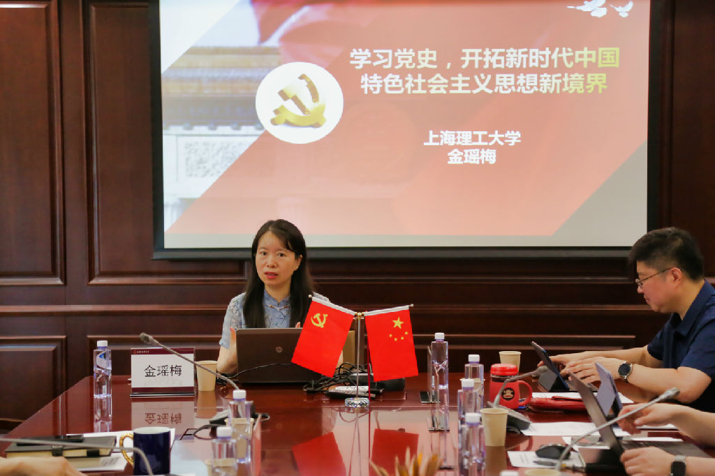 会议邀请市委讲师团成员、上海理工大学马克思主义学院院长金瑶梅教授专题宣讲《学习党史,开拓新时代中国特色社会主义发展新境界》。她从“习近平新时代中国特色社会主义思想、党的领导是中国特色社会主义最本质的特征、坚持以人民为中心、建设美丽中国、推动构建人类命运共同体、全面从严治党永远在路上”六个方面,结合亲身经历,重点讲解了进入新时代,面对当前世界出现的新问题、新情况,必须坚持以习近平新时代中国特色社会主义思想为指导,在党的全面领导下,坚定信心,开展好工作。