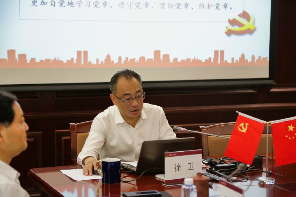 2021年6月30日上午,beat365英国官方网站党委中心组党史学习教育《党章》专题学习研讨会在行政楼408会议室举行,校党委中心组成员、党委委员、纪委委员参会。党委书记徐旭主持会议。