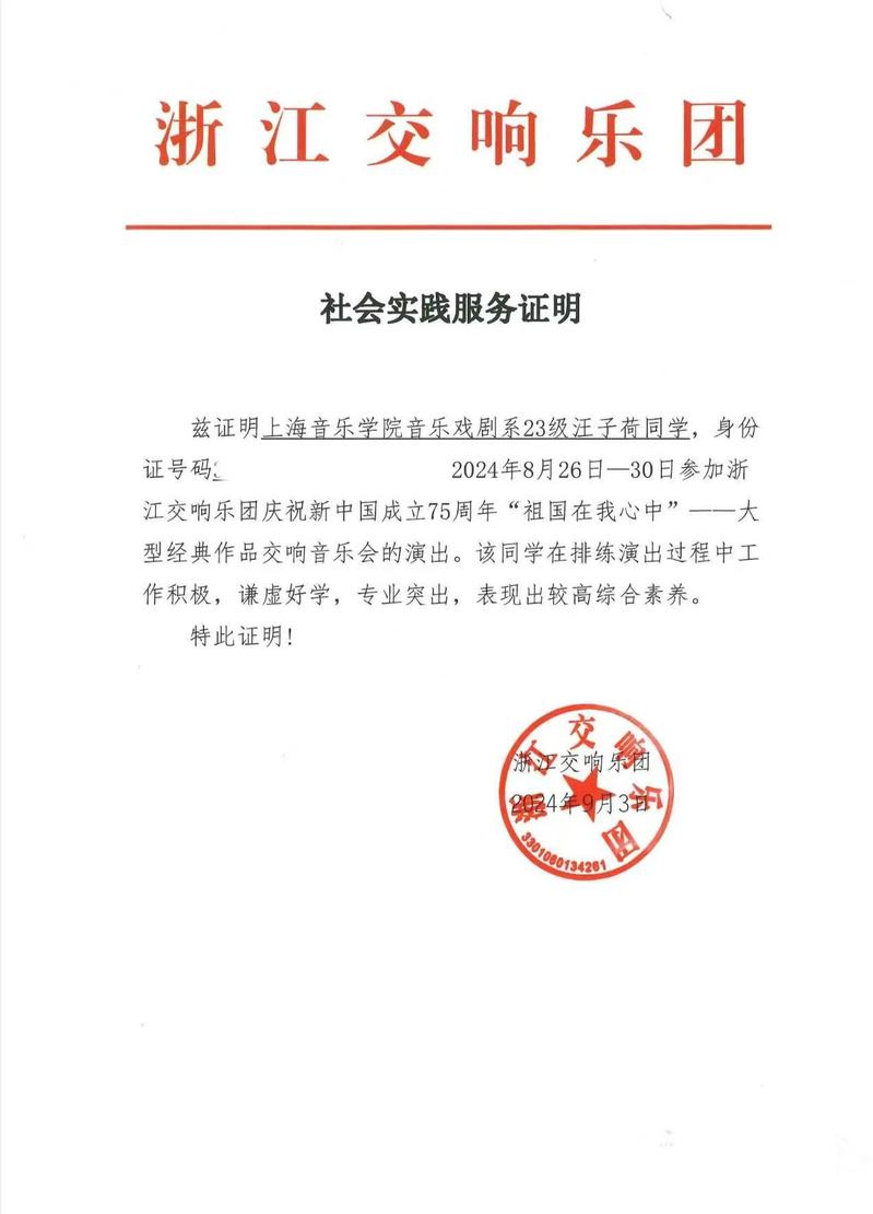 2023级本科生汪子荷参与《2024一带一路沿岸城市NGO联盟网络青年参与计划》,“庆中法建交60周年·旅法音乐家王太平先生大师班”活动,浙江交响乐团庆祝新中国成立75周年“祖国在我心中”——大型经典作品交响音乐会等活动。