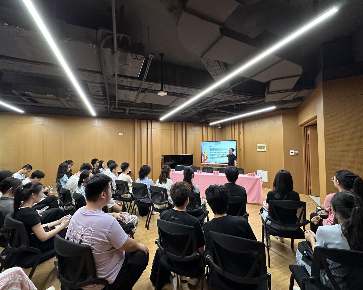 党支部副书记承倩雯开展了新生入党教育,引导新生树立正确的价值导向。她系统讲解了党的光辉历程、性质和宗旨,明确了入党的基本条件、党员的权利与义务,深刻阐释了“全心全意为人民服务”的根本宗旨与“为实现共产主义奋斗终身”的理想信念,同时为新生们指明了以实际行动向党组织靠拢的路径,鼓励新生将个人艺术追求与国家文化发展需求相结合。