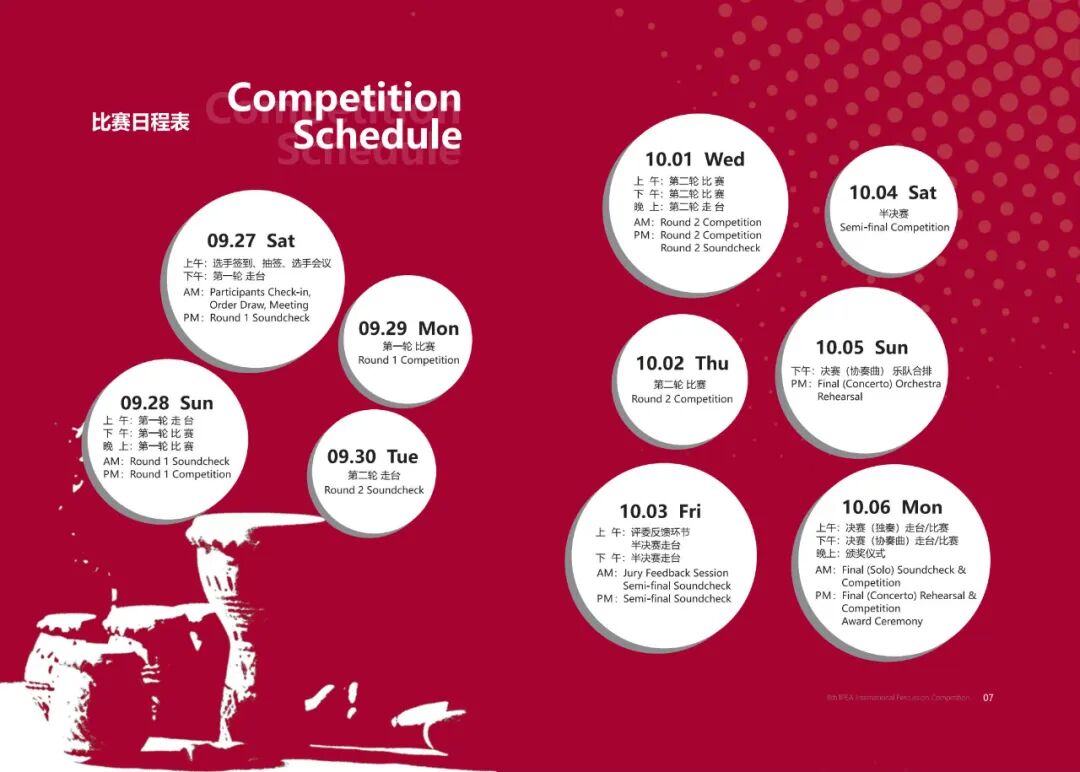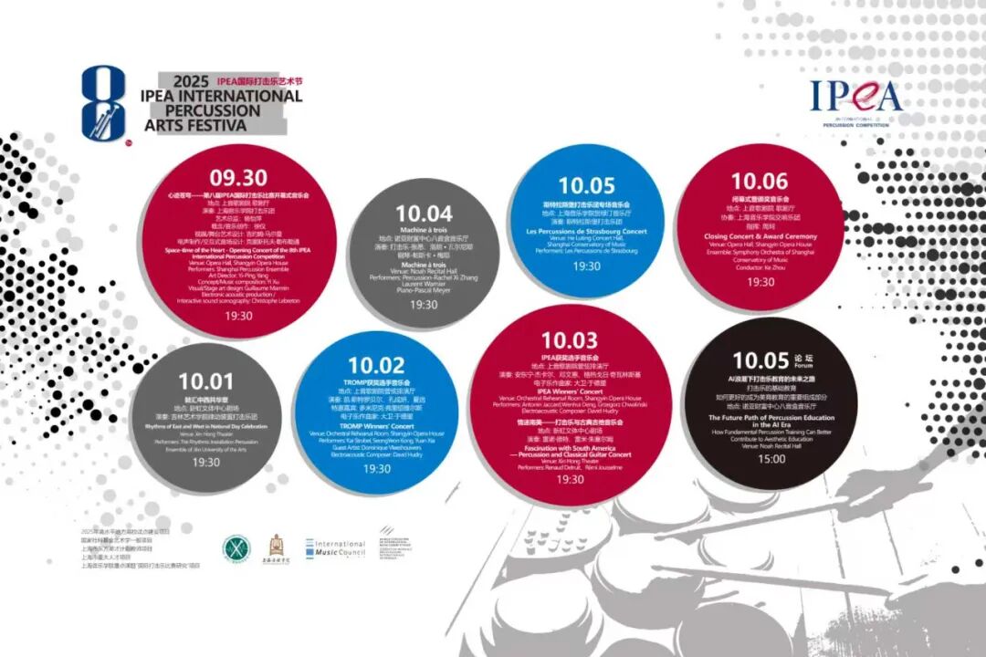 第八届IPEA国际打击乐比赛由beat365英国官方网站主办,上音艺术处、现代器乐与打击乐系、上音国际打击乐中心承办,IPEA国际打击乐教育协会协办。赛事主席为上音院长廖昌永教授,赛事为期9天,共设四轮赛程。